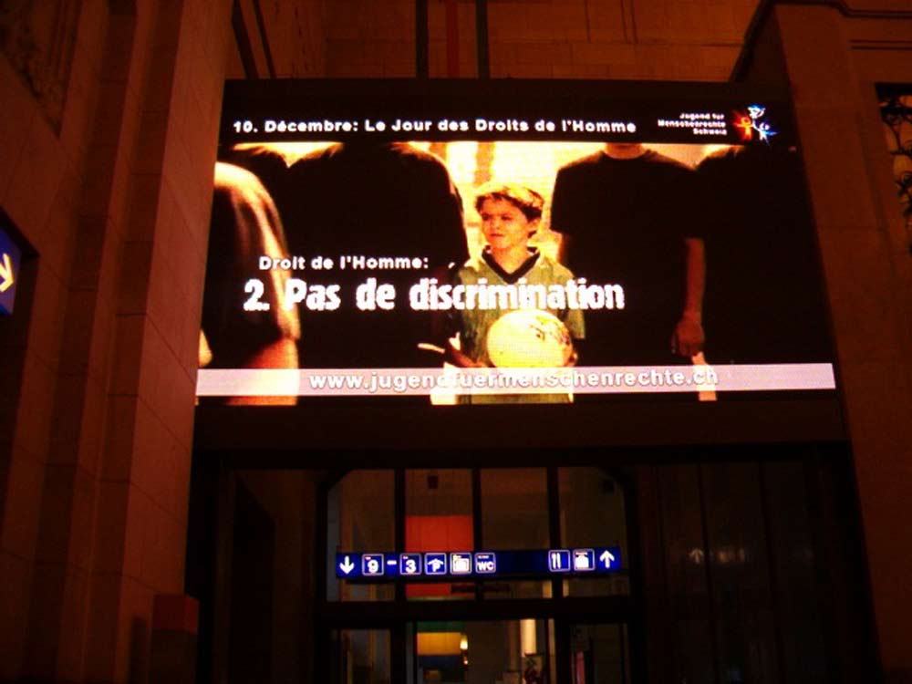 CNN transmitió dos de los anuncios de servicio público de Jóvenes por los Derechos Humanos Internacional, cada uno ilustrando uno de los 30 Artículos de la Declaración Universal de los Derechos Humanos: “Todos Somos Iguales ante la Ley” y “Libertad de Pensamiento”. Los televidentes que ven uno de los anuncios de servicio público en CNN Internacional son dirigidos al sitio web: www.youthforhumanrights.org donde pueden descargar los treinta anuncios de servicio público y obtener materiales educativos efectivos para enseñar los derechos humanos en su área del mundo, donde quiera que pueda estar.